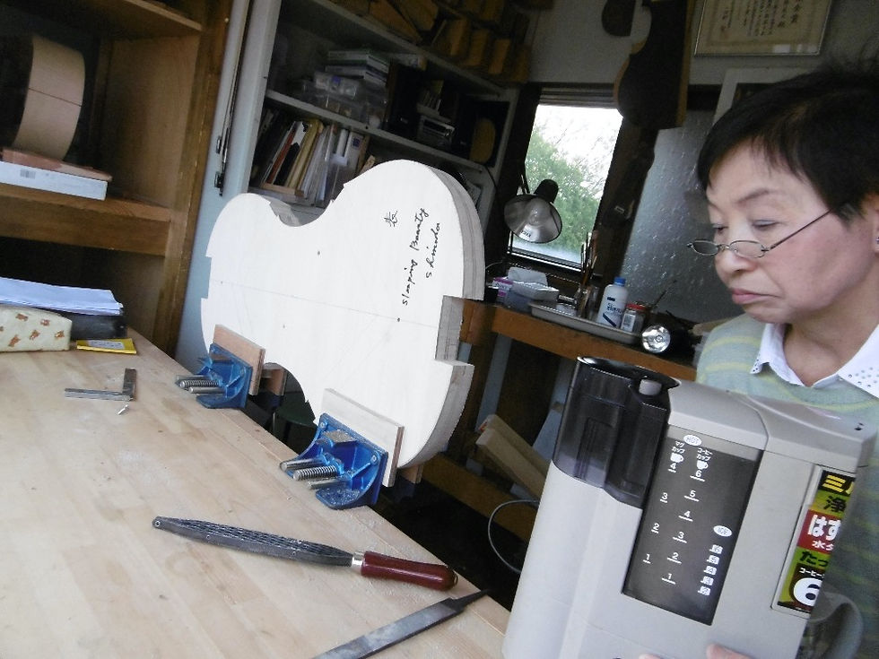 篠田さんなかなか工作心がある。先ずセンターピンを創る。7㎜の真鍮棒をのこで切る。ボール盤で、絶対垂直を守り開ける。さらにピンを差し込み左右の幅を整える。さらに底面からの直角をしつこいまでに追求、その面を平らにしてモールドの完成である。