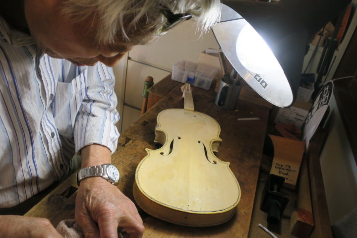 先週、水蒸気の使い方で失敗!それを見事に今週修復。パッチを張って強化を図る。今週はピンの位置を確認見事なホワイトクライスラーの完成となる。今日はターへ―楽団の新人歓迎会。”夏の終わりに”を志野亜紀先生とデュエットろうろうと工房中に響かせた。来週からはいよいよニス塗りに入る・・・。