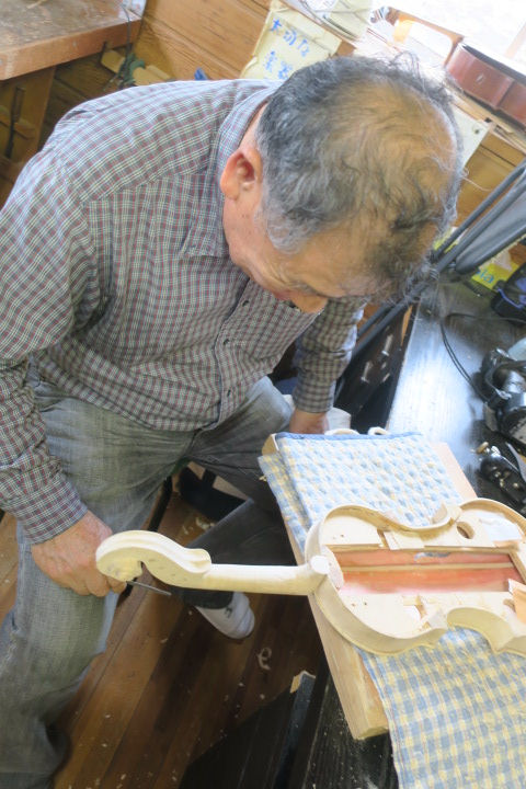 古川さんネックを取り付け、地板を張り付けるべく周辺をきれいにする。愛用の燕三条で購入した、小のこを使ってはずしていく。大体外したところで小のこが”ぼきっ”折れた。ああ・・・。