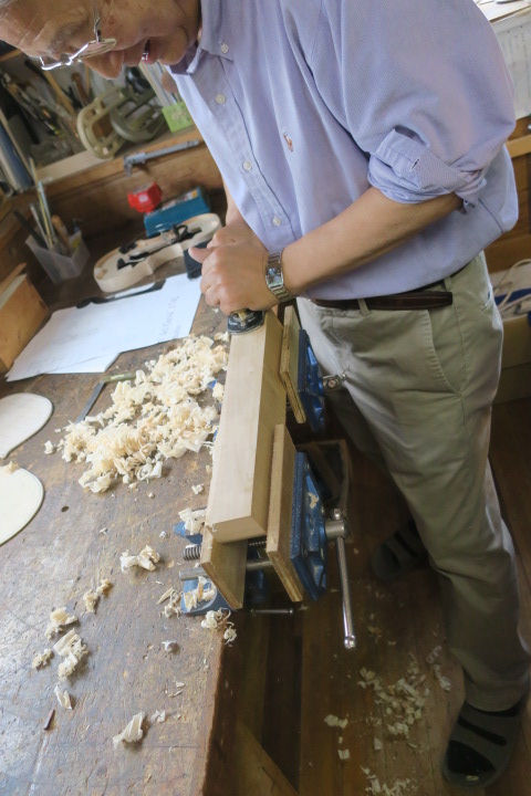 ヴァイオリンで”クロイッエル"ソナタ、チェロ”無伴奏パルティータ”、なんでもこなす堀井さん。チェロ”ダヴィドフ”を完成、ヴァイオリン”IL・CANNON”に挑戦している。胴体は完成、ネックに挑んでいる。自宅工房が威力を発揮順調に進んでいる。