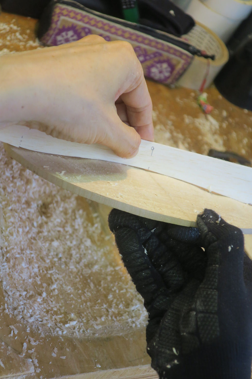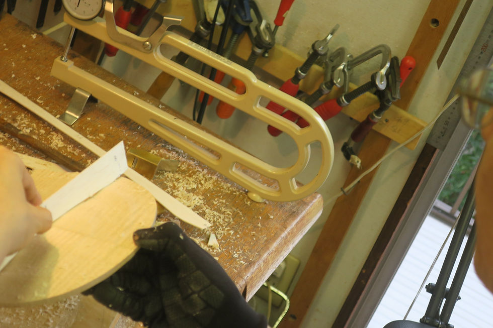 大分、ヴァイオリン職人になってきた。地板のアンジュレーションを完璧にこなした・・。いよいよボディーの完成だ!、ネック創りに向け設計図通りに底面の平面を削りだす。