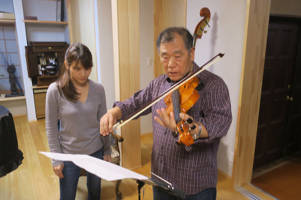 古川氏、斉藤氏、が和美先生についてヴァイオリンレッスンを受ける。みんなそれぞれうまくなってきた。美人の和美先生が来ると、老人たち嬉々としてくる。不思議なことだ!!